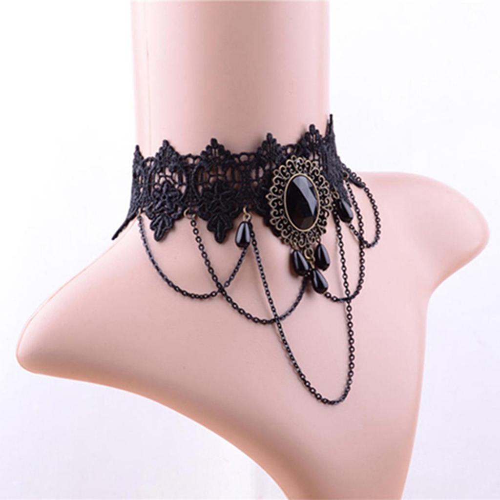 Винтажная черная цепочка со стразами, кружевное колье-колье, ожерелье в стиле панк-рок, готика