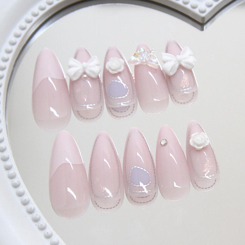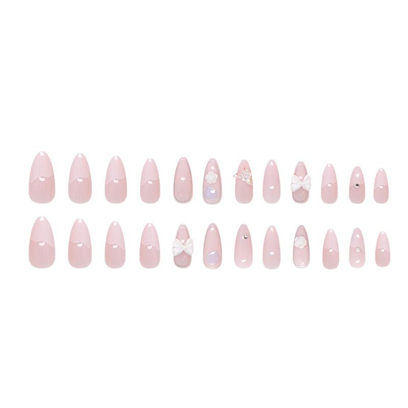 24 шт. розовые и белые накладные ногти для девочек, сладкая цветовая гамма, съемные накладные ногти с эффектом ветра, алмазные