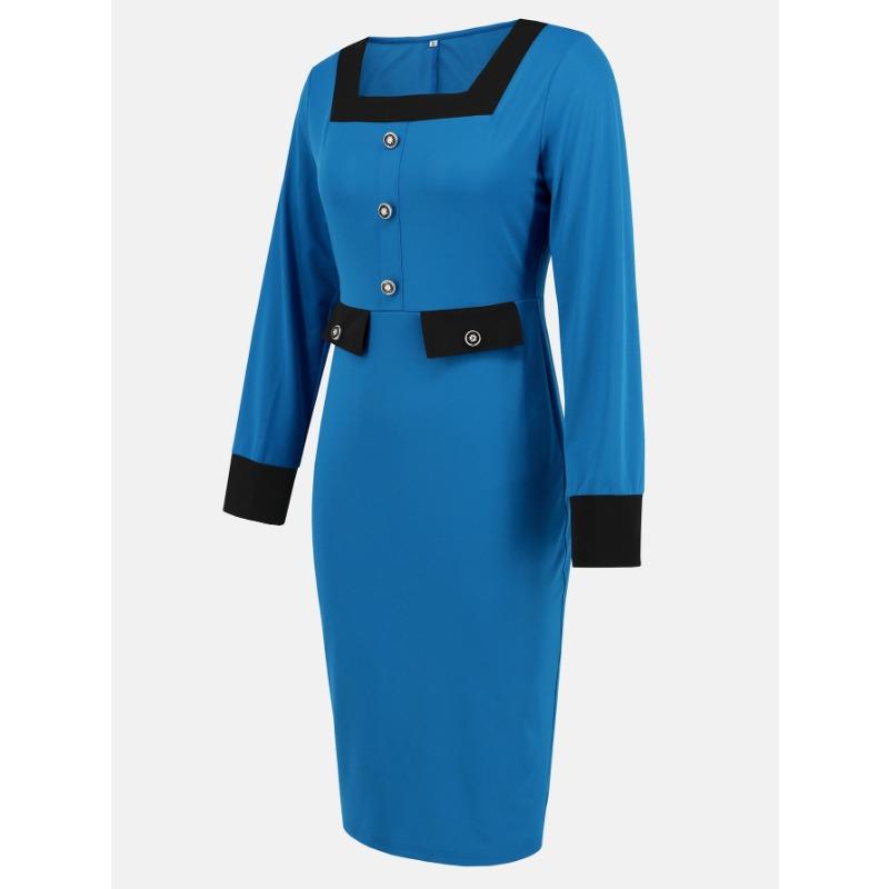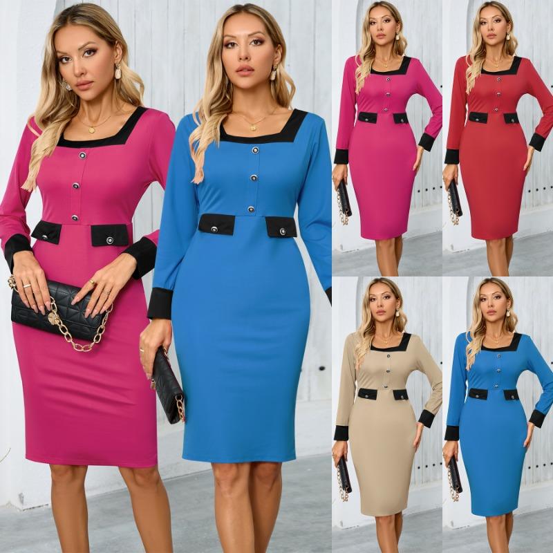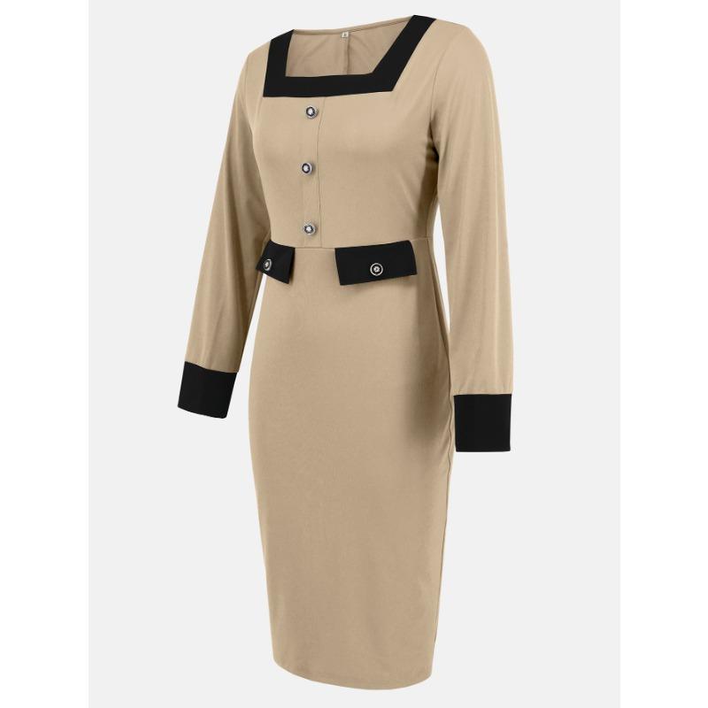 Осенне-зимнее платье с квадратным воротником и длинными рукавами, профессиональная юбка, женское платье