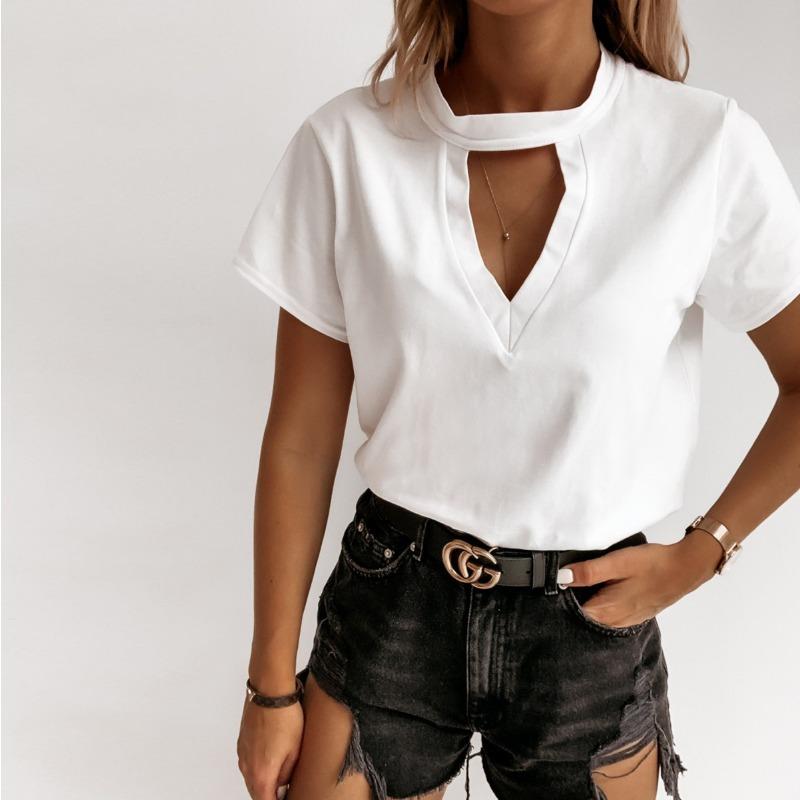 Женские простые футболки-топы с V-образным вырезом и вырезом-карандашом