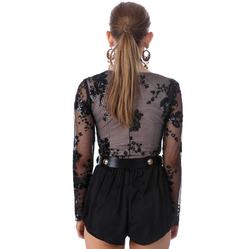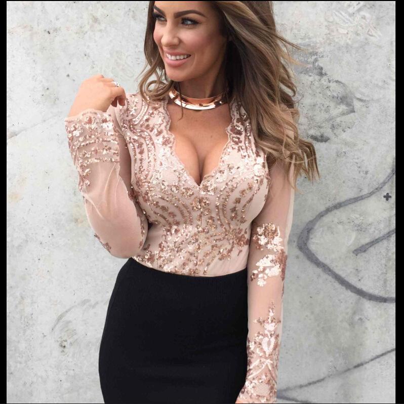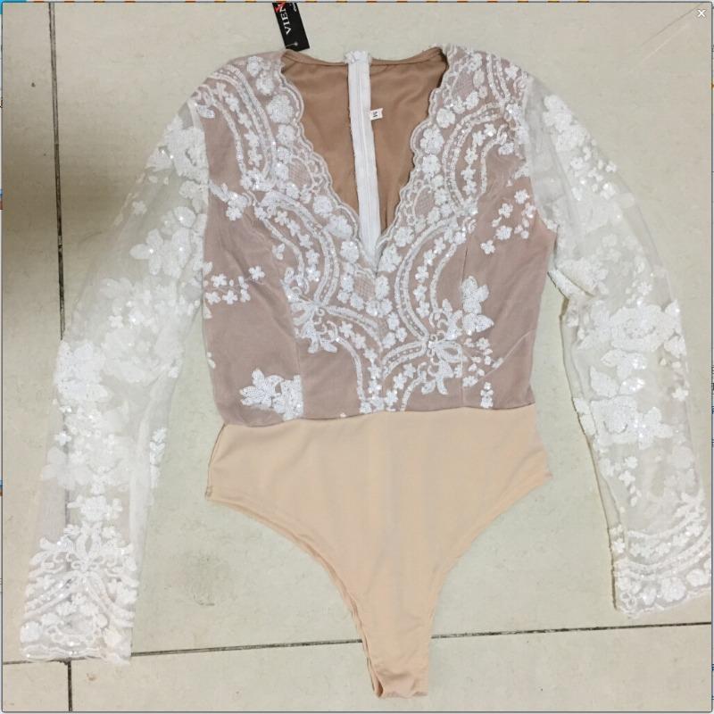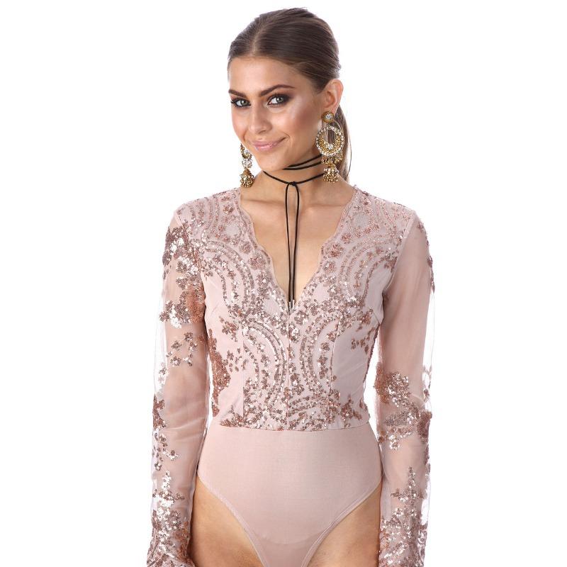 Женский осенне-зимний повседневный боди с длинным рукавом и V-образным вырезом, отделанный бисером
