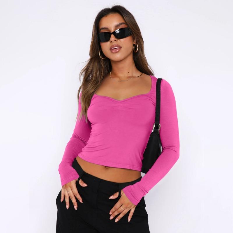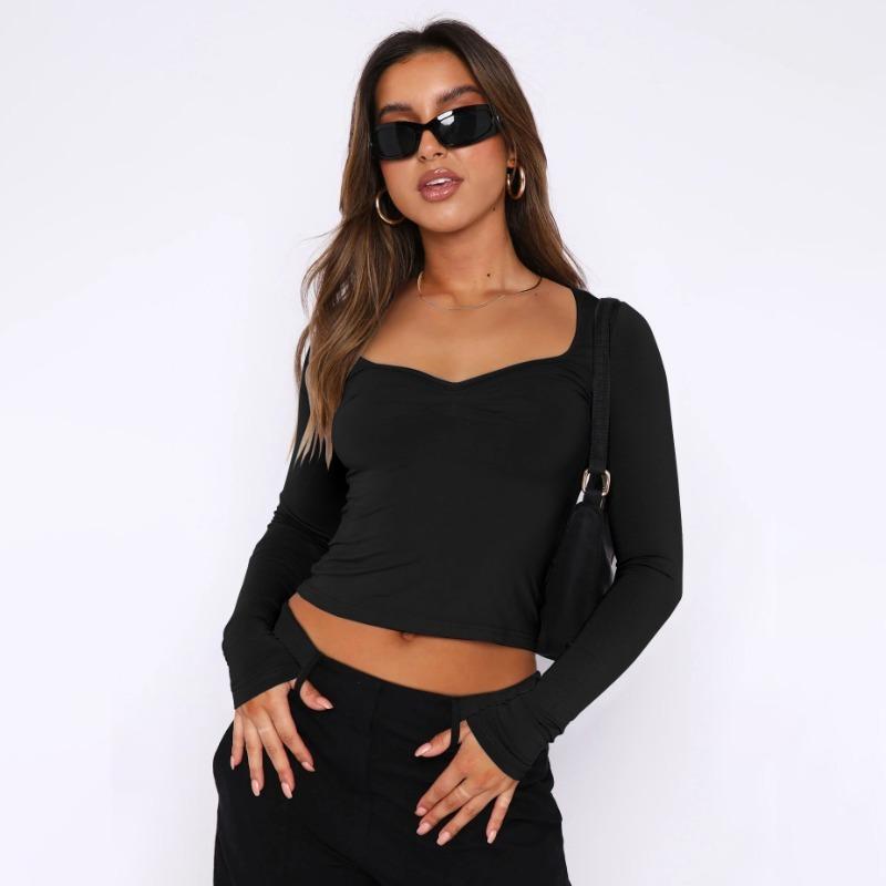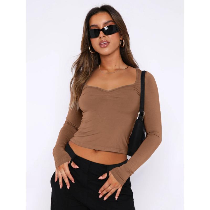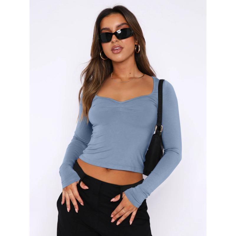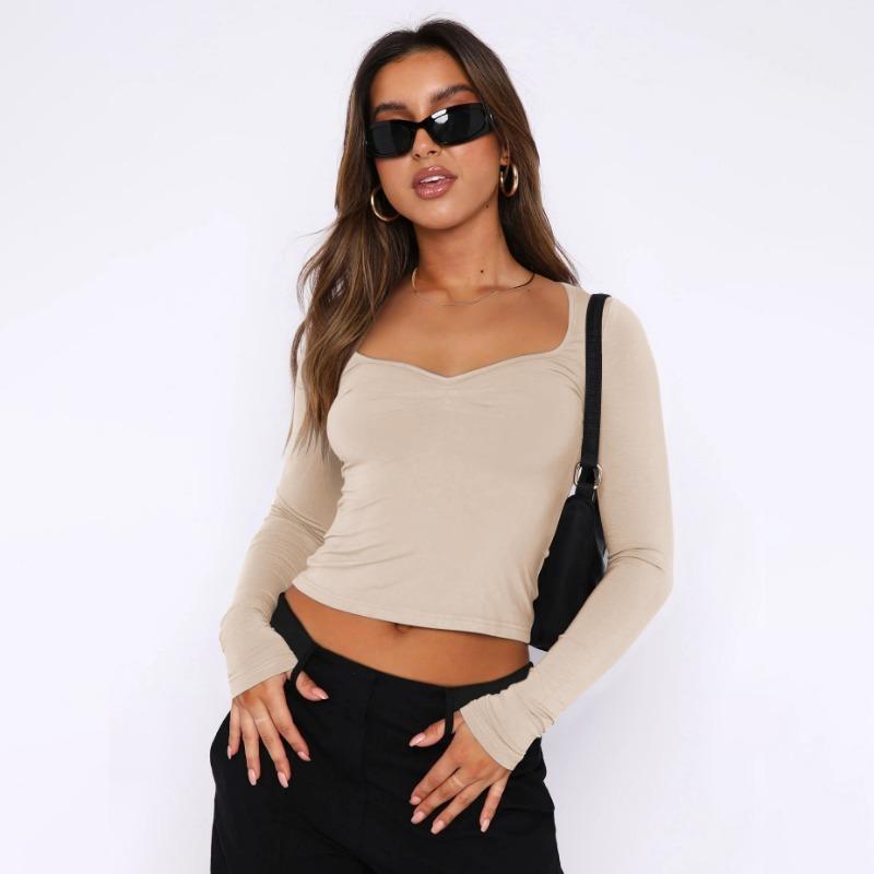 Осенний женский однотонный квадратный вырез с узким вырезом и длинными рукавами