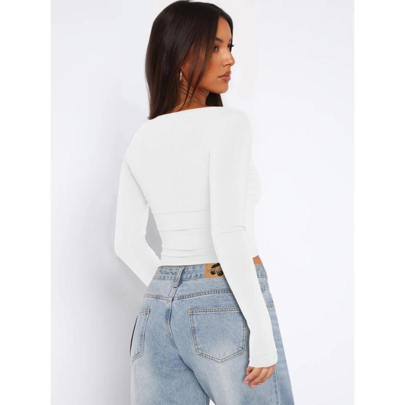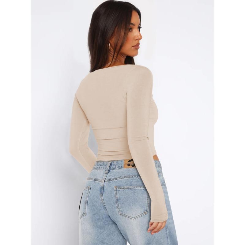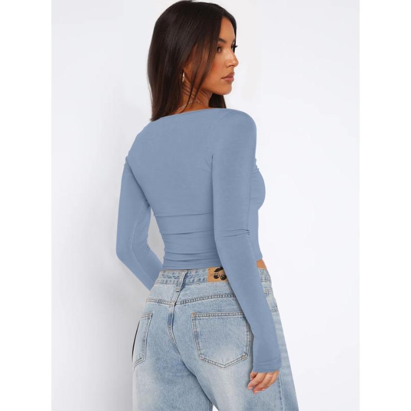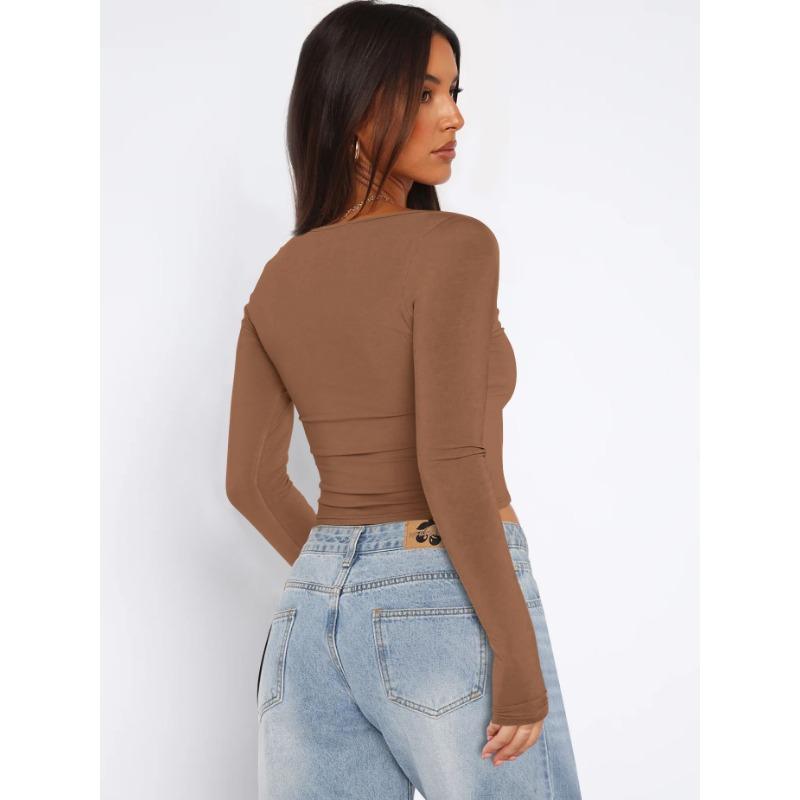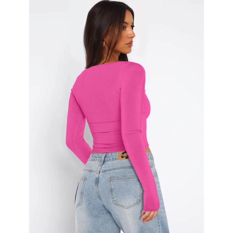 Осенний женский однотонный квадратный вырез с узким вырезом и длинными рукавами