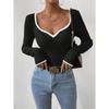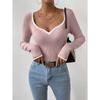 Женский свитер с V-образным вырезом и полосатым низом, сексуальный, однотонный
