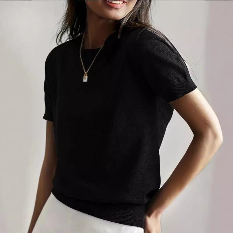 Весна и осень Круглый вырез Короткий рукав Широкий внутренний трикотажный низ Короткий верх