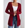 Осенне-зимний однотонный вязаный кардиган средней длины с длинными рукавами и карманом