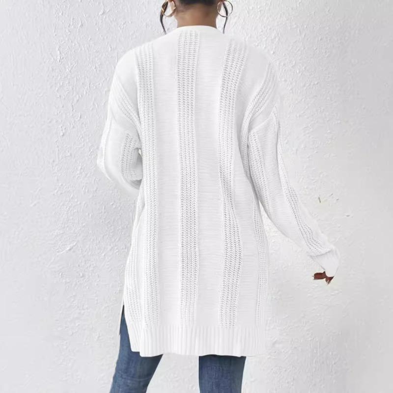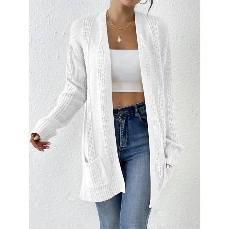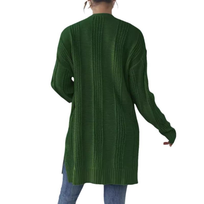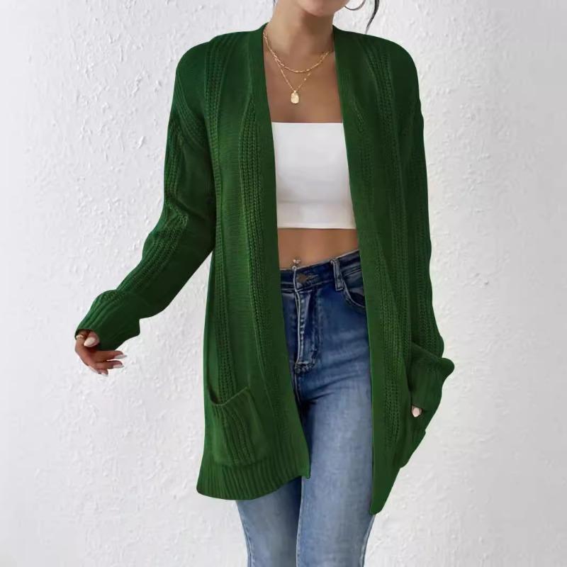 Осенне-зимний однотонный вязаный свитер с длинными рукавами и карманами
