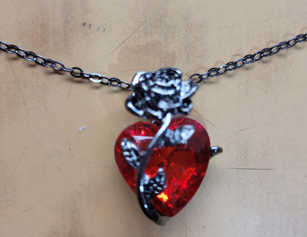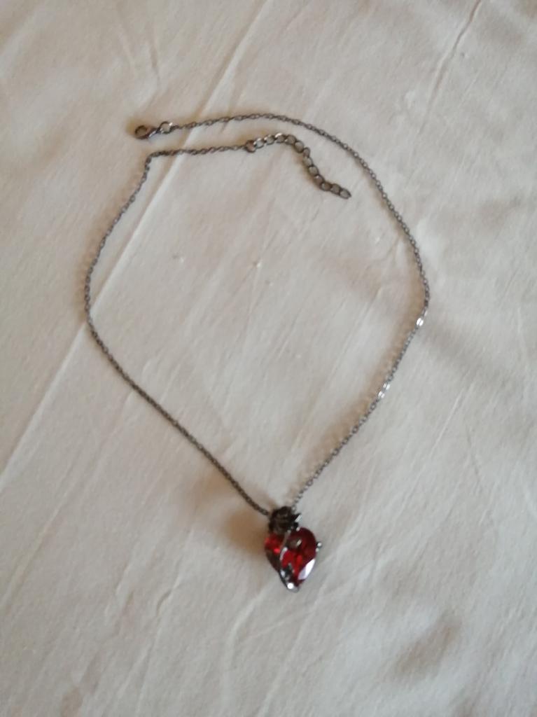 Вчера 19апреля получила свою посылку, состоящую из 16 заказов. Посылка до г. Омска шла месяц и 1день. Один из заказов вот это готическое красное сердечко с розой тёмного металла. Цепочка не длинная, тонкая, тёмного цвета. Под этот кулон цепочку можно было и помассивнее,кулончик крупноват. Спасибо всем, кто принимал участие в моём заказе.