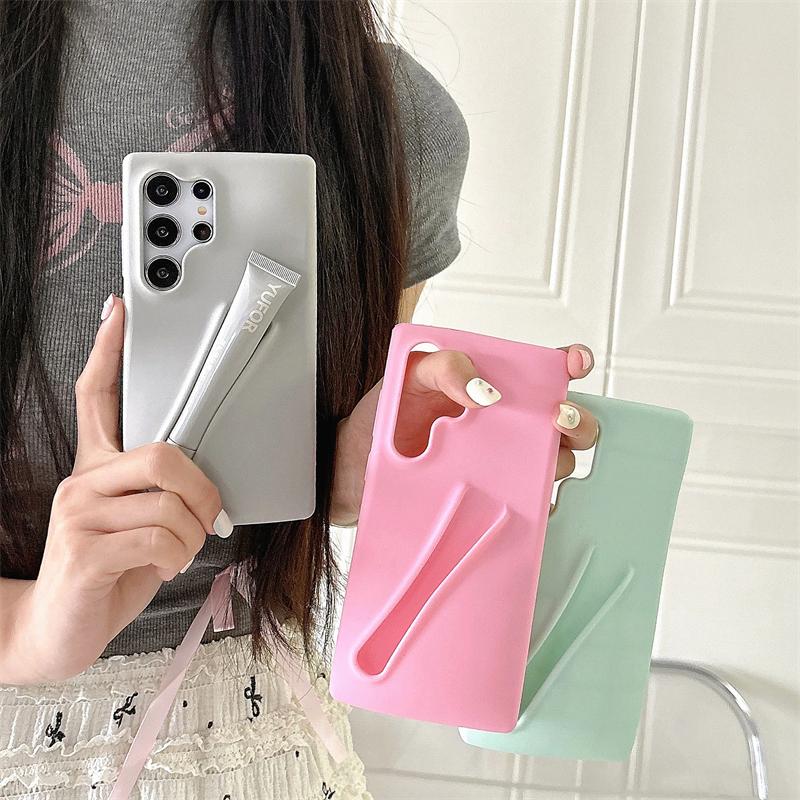 Забавный держатель для блеска для губ силиконовый защитный чехол для телефона Samsung Galaxy S23 Plus S24 S24 Ultra A14 A54 A15 4G/5G