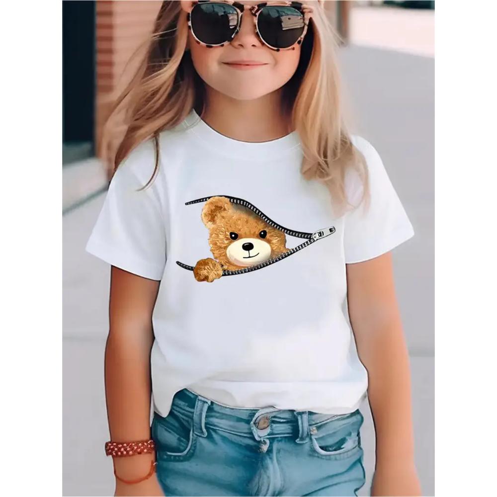 2025 Белый медведь животное 3D принт мода смешные футболки для девочек летние топы с коротким рукавом футболка повседневные футболки одежда для девочек