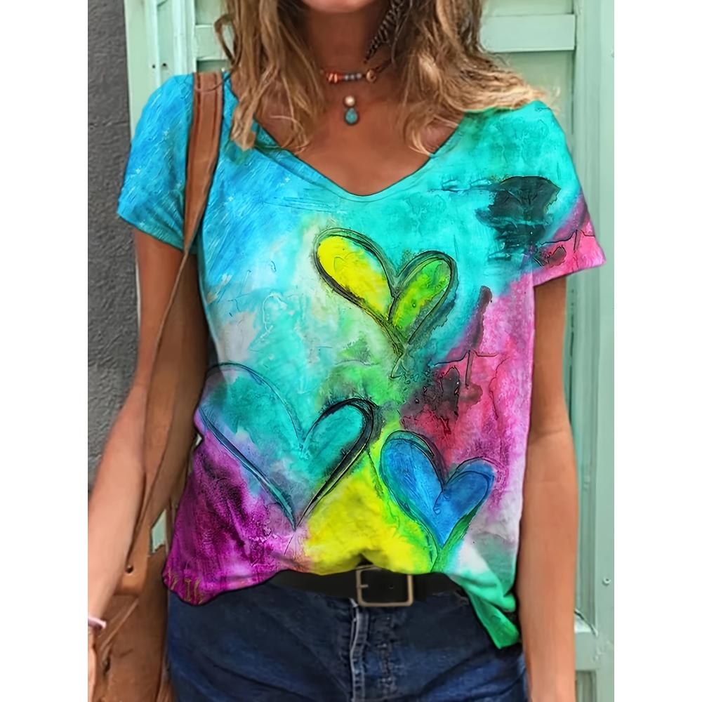 Новая стильная женская футболка с принтом в виде сердца, футболка с принтом тай-дай, свободный топ, женская одежда, дизайн, короткий рукав, блузка больших размеров 5XL — купить товар онлайн с бесплатной доставкой по всему миру!