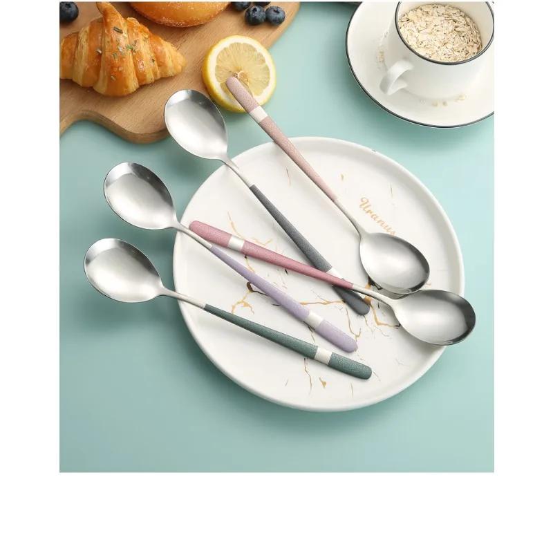Ложки для еды из нержавеющей стали, маленькие ложки, студенческая модная посуда, ложка для мороженого, десертные ложки, переносные ложки