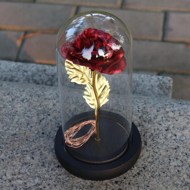 Романтичная вечная роза со светодиодной подсветкой в стеклянном куполе для подарка на День святого Валентина, матери или на Рождество