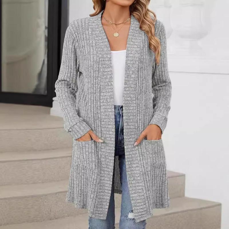 Женская осенне-зимняя длинная однотонная куртка-кардиган с длинным рукавом и свободными карманами — купить товар онлайн с бесплатной доставкой по всему миру!