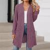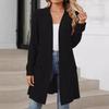 Женская осенне-зимняя длинная однотонная куртка-кардиган с длинным рукавом и свободными карманами