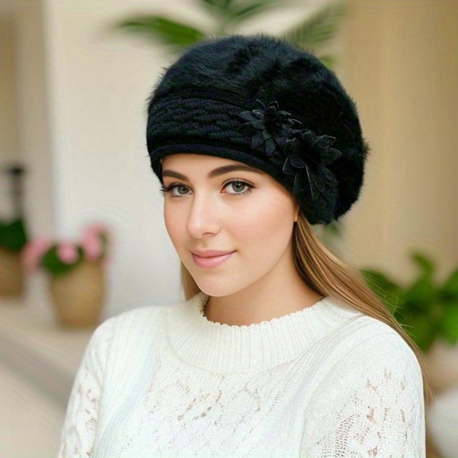 Шапка женская зимняя новая корейская версия теплая шапка однотонный берет теплая вязаная шапка из кроличьей шерсти осень и зима