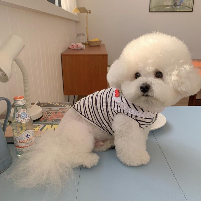 Летняя тонкая полосатая майка для питомца, тедди, кошка, милые вишенки, медведи, шнауцер, одежда для маленькой собаки, летний жилет для собаки, одежда для щенка