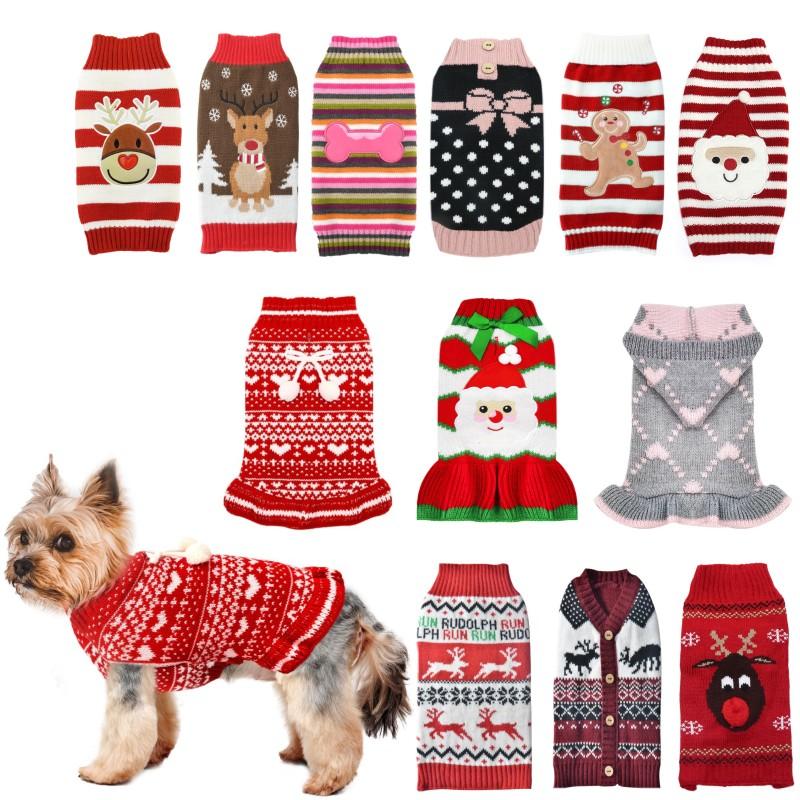 Рождественский свитер для собак, зимняя теплая одежда для собак, пальто для домашних животных, мультяшное вязаное платье для собак, куртка для чихуахуа, котенок, щенок, полосатая одежда, стиль:Мода, симпатичный