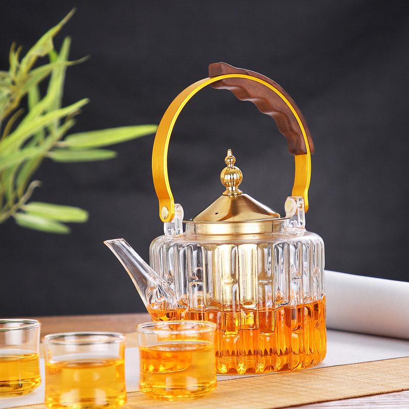 1000 мл стеклянный чайник с заварником для чая, золотой термостойкий чайник для кофе, цветочный чай, чайники для дома, кухни, чайная одежда
