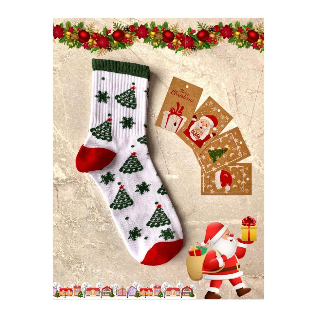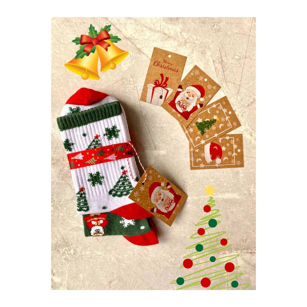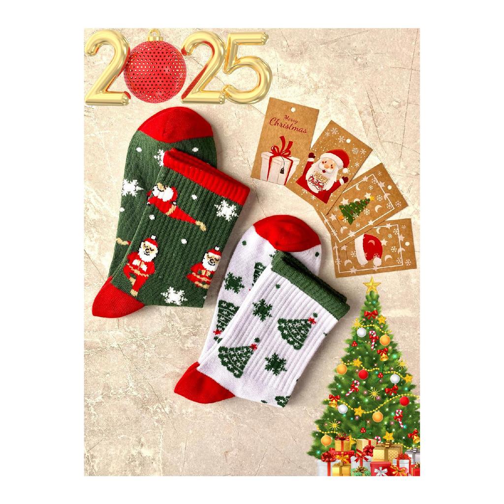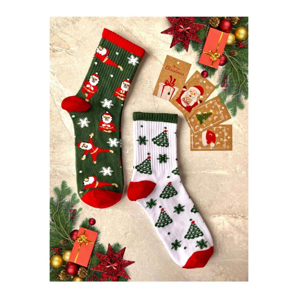 Набор из 2 хлопковых теннисных студенческих носков унисекс с новогодней елкой и Санта-Клаусом с рождественским рисунком подарочной карты