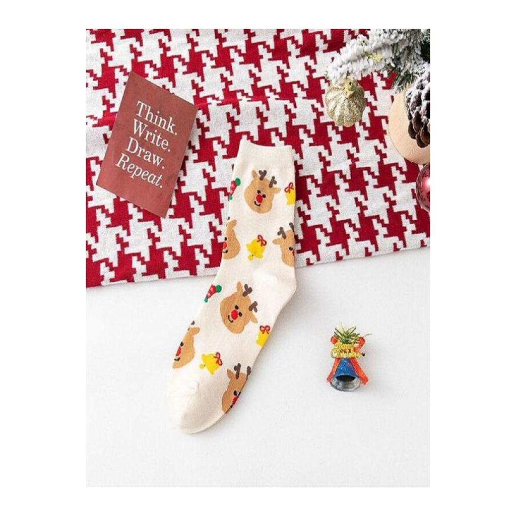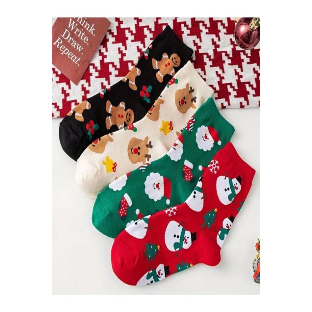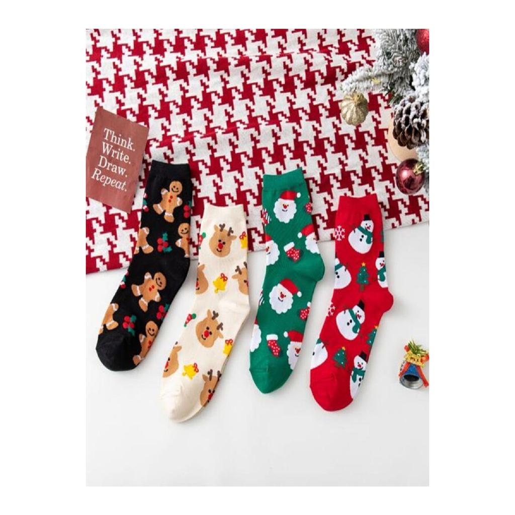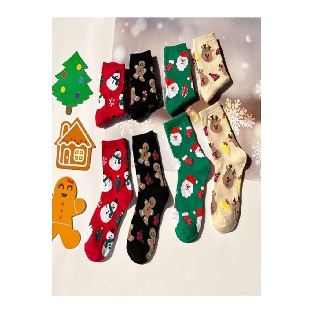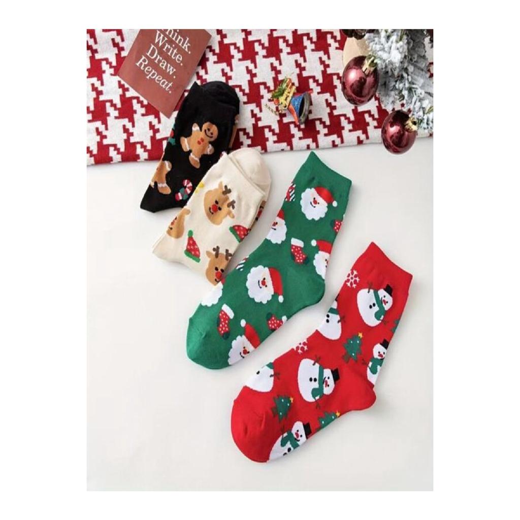 Набор из 2 хлопковых теннисных студенческих носков унисекс с новогодней елкой и Санта-Клаусом с рождественским рисунком подарочной карты