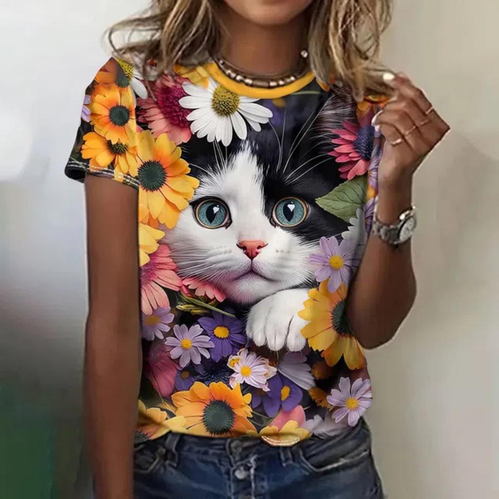 Женская футболка с рисунком животных из мультфильма, 3D-принт, футболка, повседневная, с круглым вырезом, с коротким рукавом, женская летняя свободная футболка, одежда Y2k