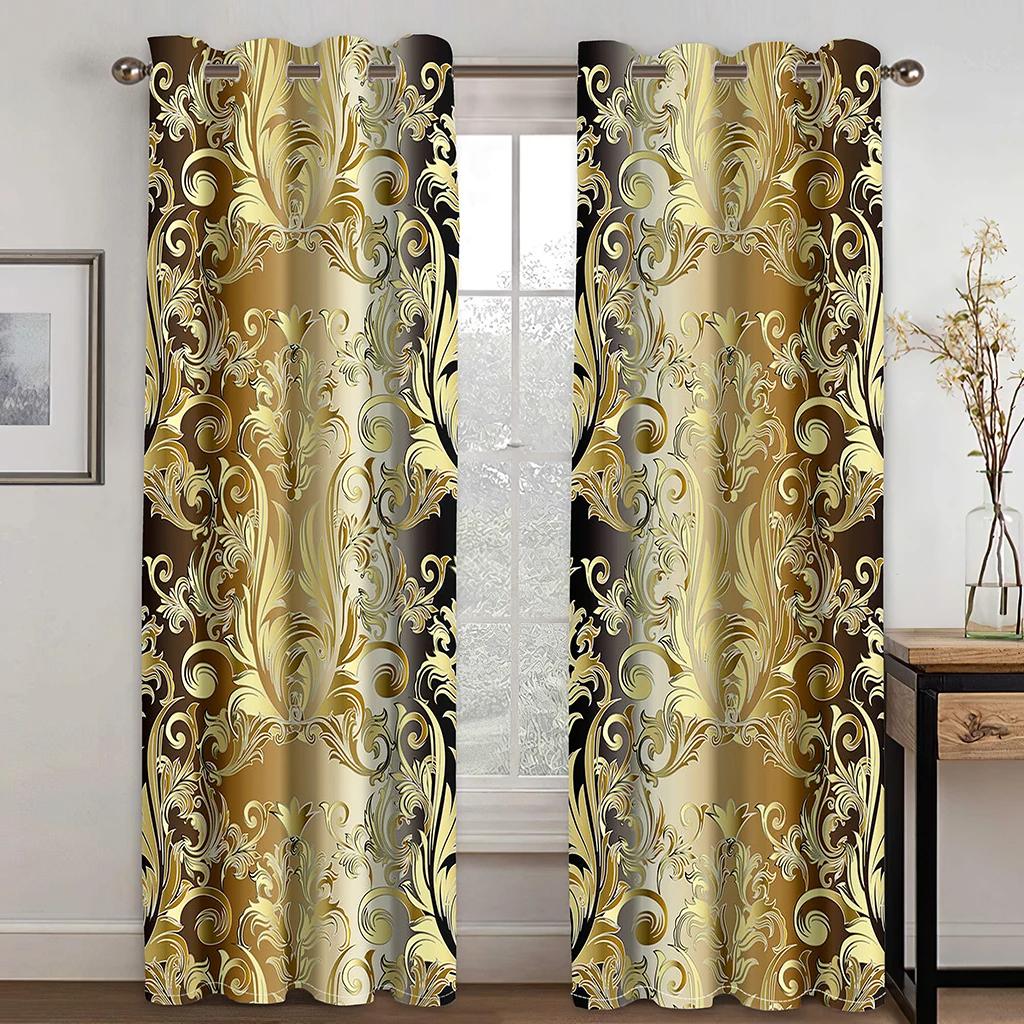 2 шт. Золотые роскошные шторы из полиэстера с абстрактным принтом в стиле барокко для спальни, офиса, кухни, гостиной, оформления окна, домашнего декора
