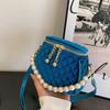 Нежная бархатная высококачественная красная жемчужная сумочка, модный дизайн, роскошная мини-сумка-ведро, женская новая сумка через плечо