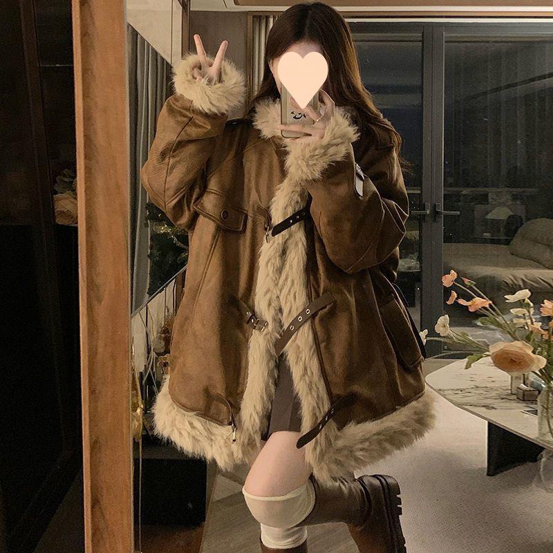 Куртка из овчины и шерсти в стиле ретро и меха для женского зимнего дизайна с ощущением ниши и свободного кроя
