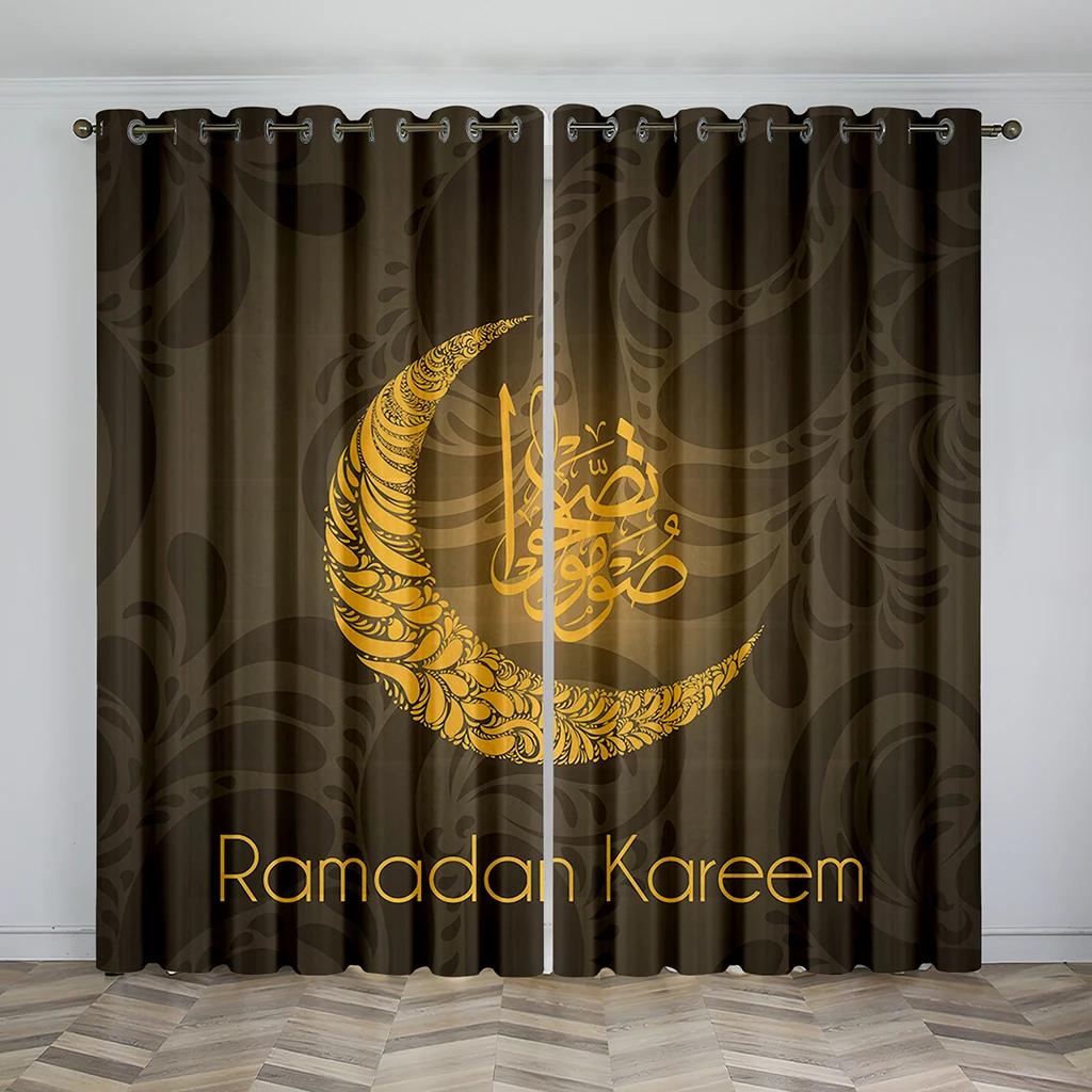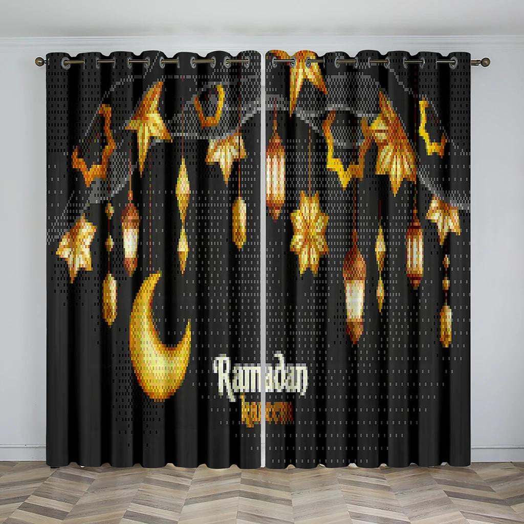 Дешевые золотые черные бохо Рамадан исламские мусульманские Карим тонкие оконные шторы для гостиной спальни декор 2 шт. Бесплатная доставка