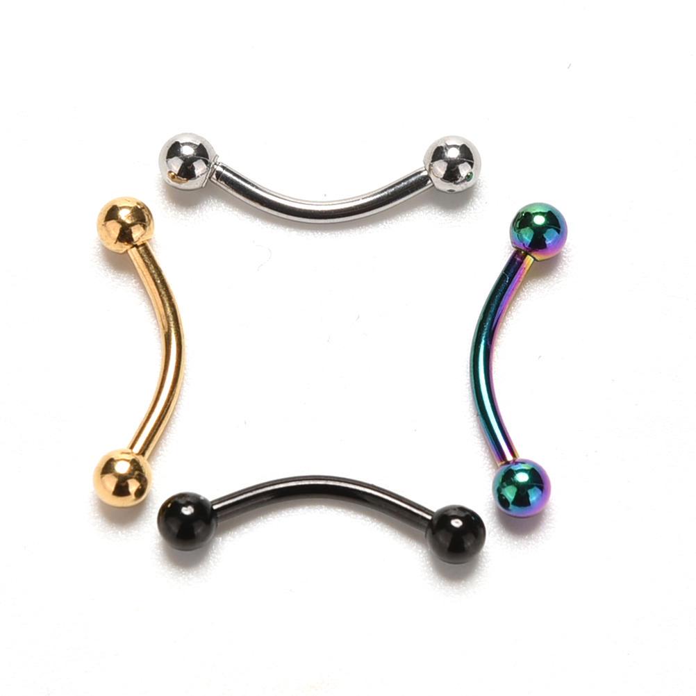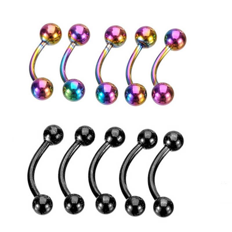 Модные украшения 10 мм, черные, 1 шт., серебряные украшения для тела, кольцо для бровей, многоцветная штанга из нержавеющей стали, изогнутый пирсинг для носа и губ, золото, уникальный