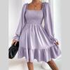 Женское весенне-осеннее платье с рукавами-фонариками, квадратным воротником и оборками, однотонное вечернее платье