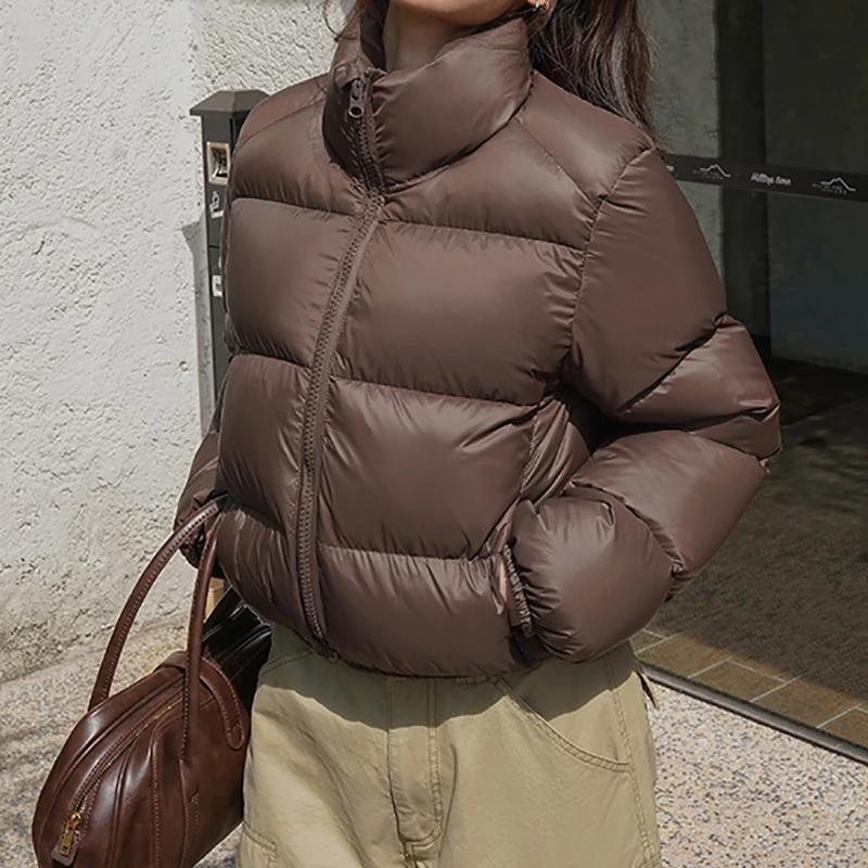 Осеннее женское свободное хлопковое пальто на пуговицах с воротником-стойкой из искусственной кожи, повседневная зимняя утепленная однотонная хлопковая куртка