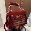 Роскошная красная клетчатая сумка-бант через плечо с жемчужно-бархатной текстурой, женская весенняя новая сумочка, простая модная темпераментная свадебная сумка