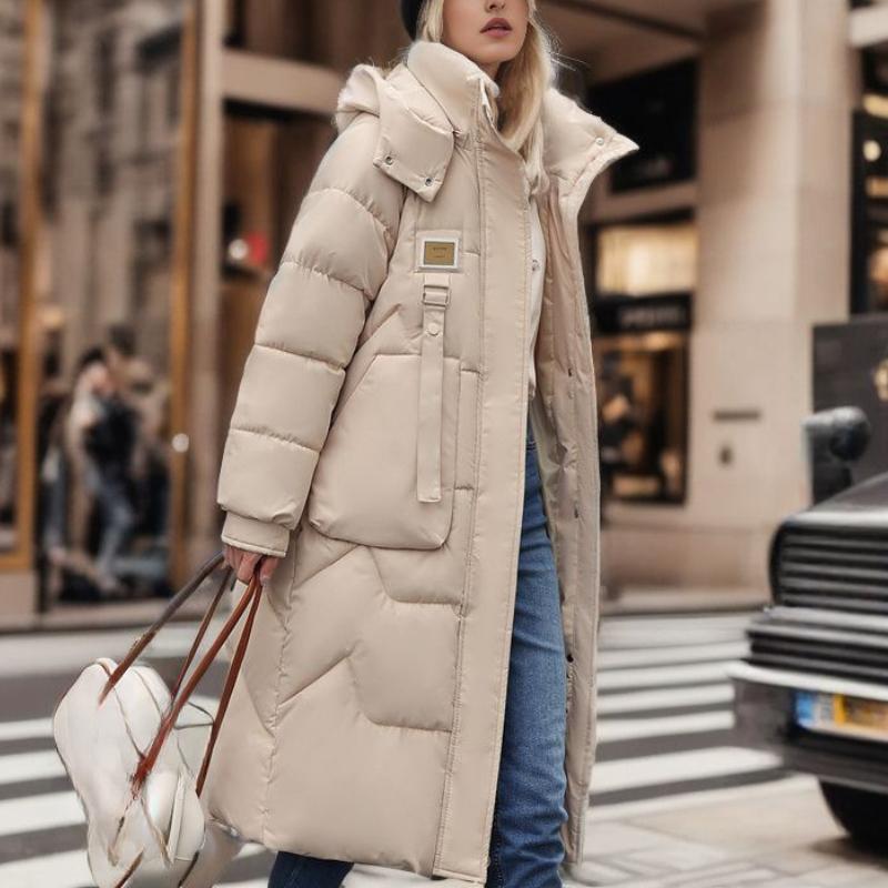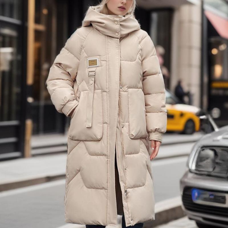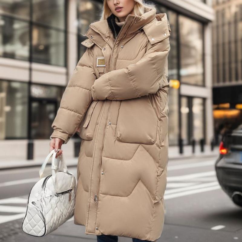 Зимняя куртка средней и длинной длины с капюшоном из хлопка, женская толстая выше колена, водонепроницаемая парка, пальто с капюшоном и большим карманом