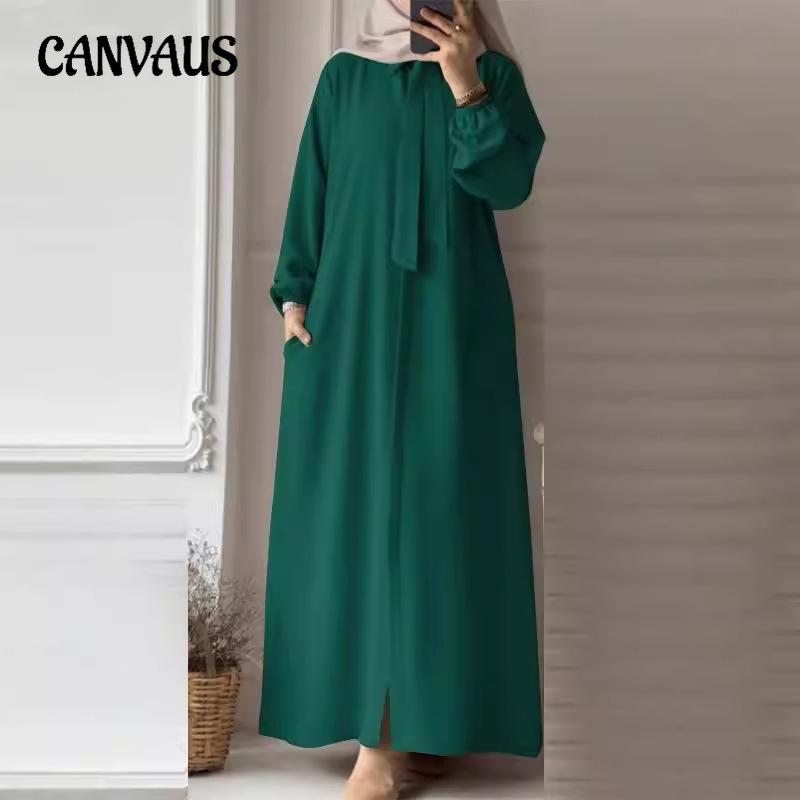 Женское однотонное платье большого размера с длинными рукавами и лацканами свободного покроя