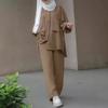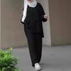 Женский костюм больших размеров с длинными рукавами и брюками-рубашкой на осень