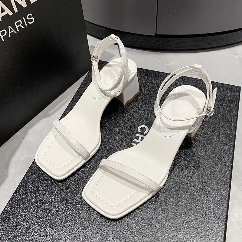 Сандалии для женщин, летние, новые модные, с открытым носком, на высоком каблуке, с квадратным ремешком на щиколотке, элегантные женские сандалии для платья