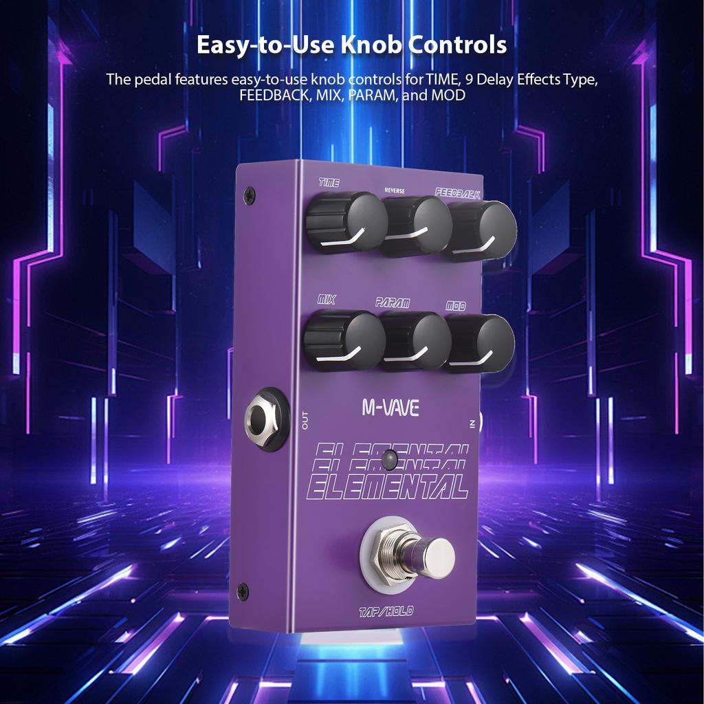 Педаль эффектов для гитары M-VAVE ELEMENTAL Delay TIME/9 Delay Effects Type/FEEDBACK/MIX/PARAM/MOD Ручка DC 9V 6.35mm Гитарная педаль