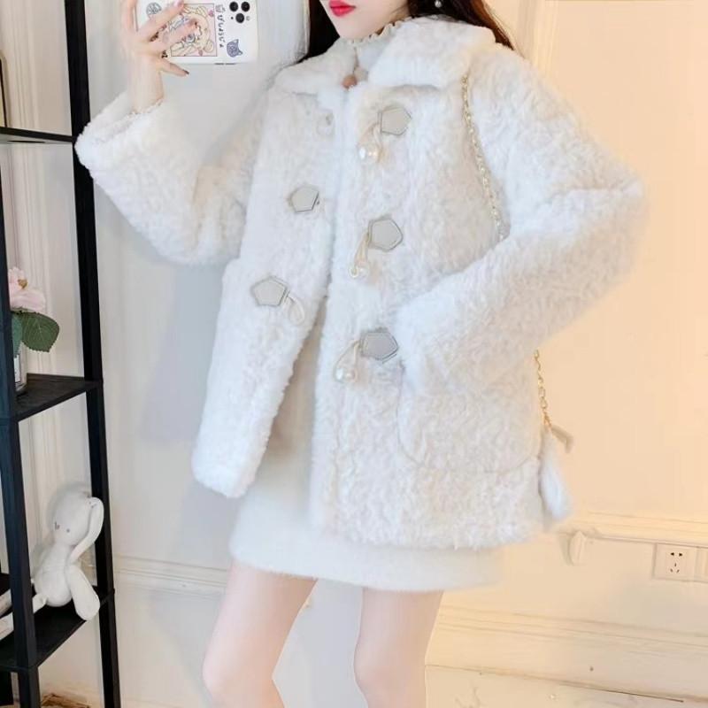 Пальто из искусственного меха кролика, женская плюшевая куртка, элегантная верхняя одежда, свободная дорожная сумка с пряжкой, шерстяная повседневная осень-зима