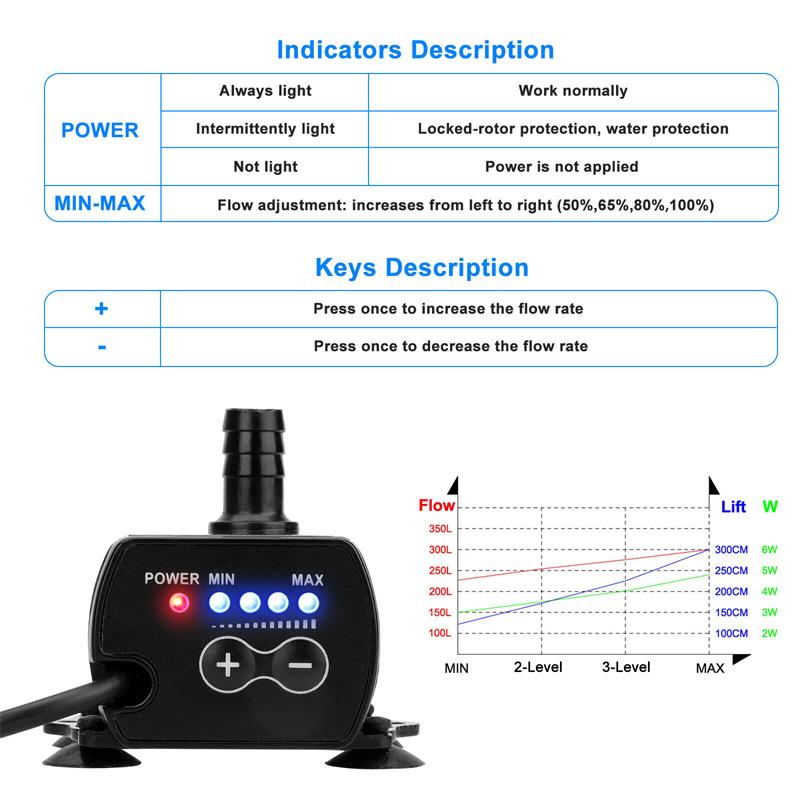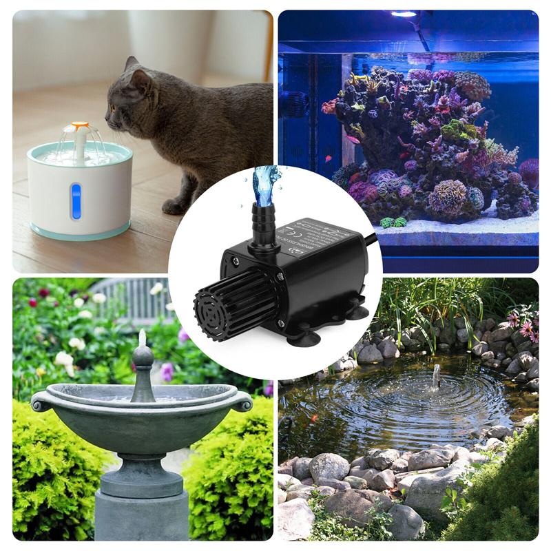 Многоразовые случаи: Фонтанный насос может обеспечить циркуляцию воды в вашем аквариуме и создать для ваших любимых рыбок среду, приближенную к естественной.. Этот погружной водяной насос может создавать течение воды, идеально подходит для аквариума среднего размера, небольшого пруда, водного сада и настольных фонтанов.. Идеально подходит для фонтана/водопада на заднем дворе, аквариума, пруда, аквариума с рыбками, настольных фонтанов, садовых скульптур, систем капельного полива на террасе, гидропонных систем и многого другого.