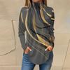 Женская модная повседневная футболка с длинным рукавом с высоким воротом и принтом, пуловер, топ