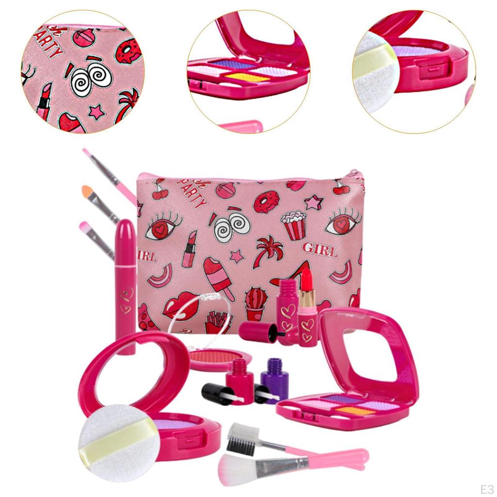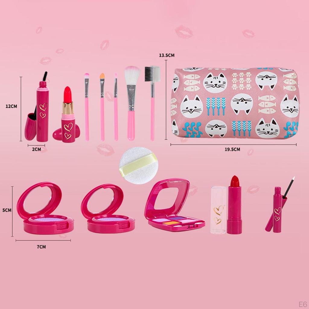 - 【Полный набор】Наши наборы для ролевой косметики для девочек включают в себя помаду, пудру, палитру румян, кисточку, пуховку, кисть для макияжа, кисточку для туши для ресниц и многое другое.
