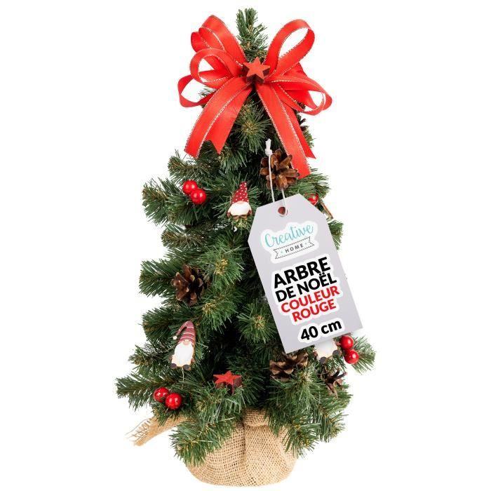 Sapin de Noël Artificiel - Creative Home - 40cm - Rouge - Socle en bois - Décoration intérieure