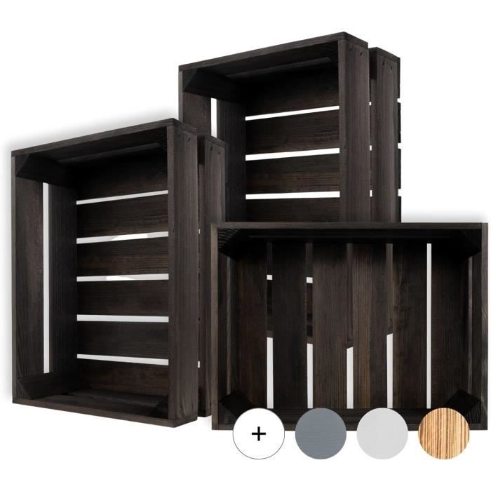 Caisse en Bois - Creative Deco - Lot de 3 - Noir - 40 x 30 x 15 cm - Rangement Vintage