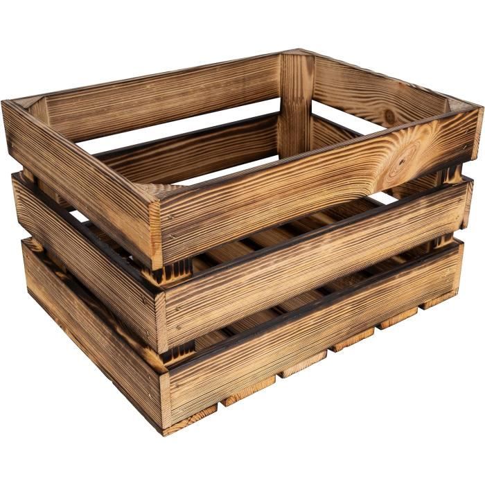 Creative Deco Caisse en Bois Flammé 40 x 30 x 23 cm | Caisse Rangement Bois | Caisse en Bois Vintage | Cagette en Bois