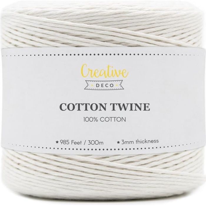 Corde Macramé - CREATIVE DECO - 300m - Blanche - 12 Plis - Coton