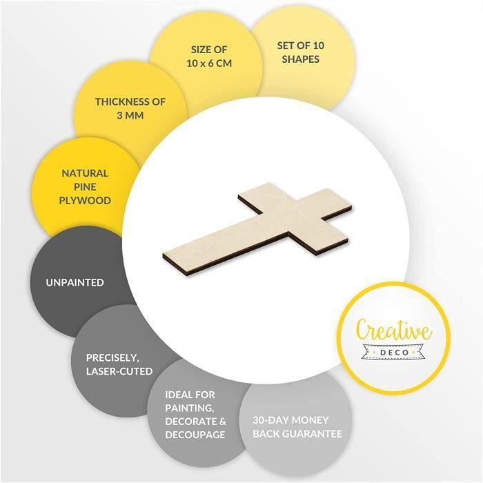 Formes de Croix à Décorer - Creative Deco - 10 x 6 cm - Découpes en Bois Contreplaqués non Peints