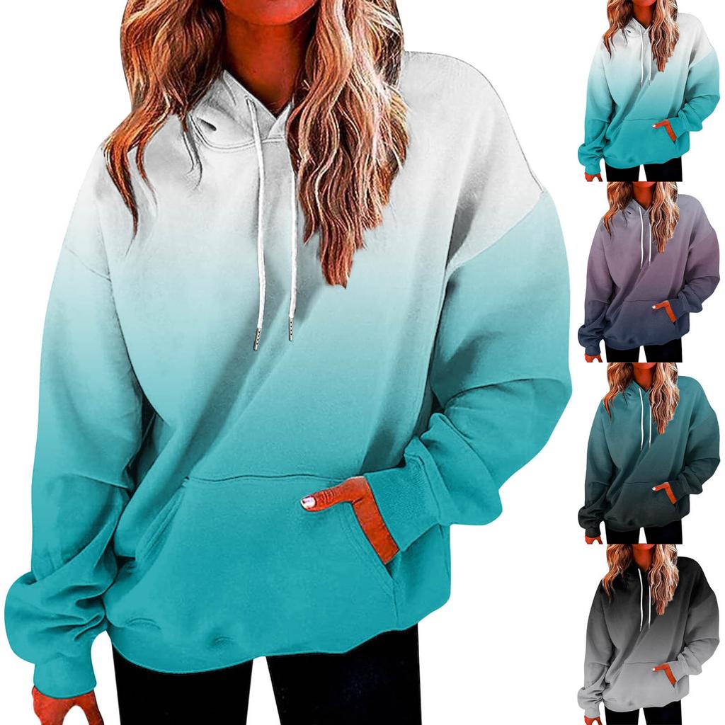 Уличная одежда с капюшоном Градиентный цвет Женская толстовка Хип-хоп Осень Зима Длинный рукав Harajuku Пуловер Топы Женские толстовки