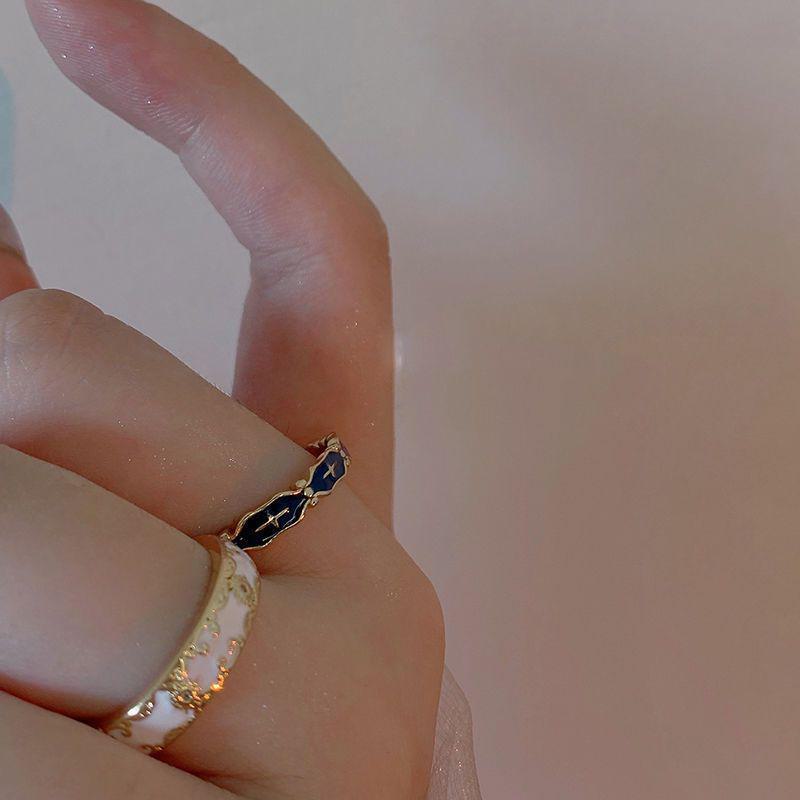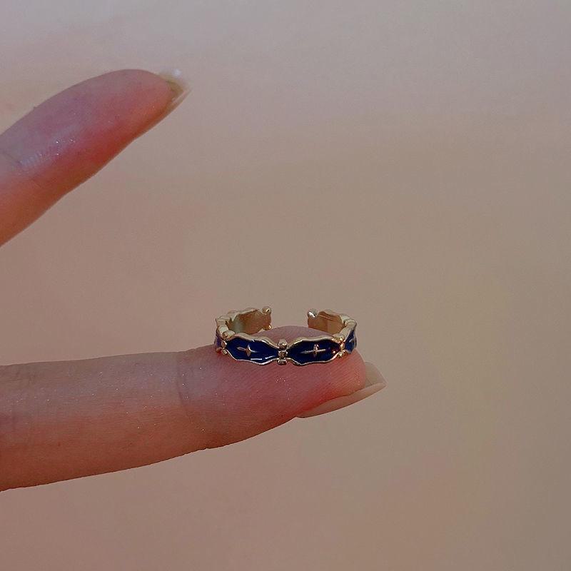 Женское кольцо с синим крестом и эмалью — элитный нишевый дизайн, легкий роскошный аксессуар